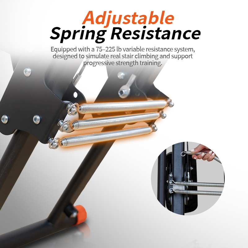Triple spring resistance (3×75 lbs) for adjustable, realistic stair-climbing intensity.